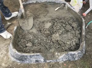 - Une fois que le béton a atteint la bonne consistance, versez-le dans l’auge ou la brouette et utilisez-le dans l’heure qui suit.